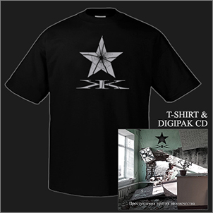 Black T-shirt, shot silver KYPCK symbol in front. |